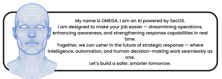 An operating system designed to function like a digital employee and built to support SSE operations, SecOS works alongside human personnel to enhance efficiency, speed, and accuracy. SecOS can assist human dispatchers by answering emergency calls, coordinating and dispatching officers, and piloting response drones. SecOS is can even support by activating critical security features for your home or business. By integrating automation, artificial intelligence, and real-time response capabilities, SecOS strengthens operational control while allowing human teams to focus on higher-level decision-making.